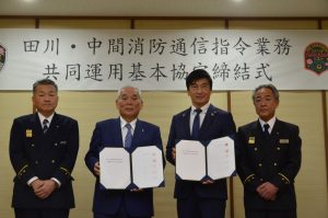 田川・中間消防通信指令業務共同運用基本協定締結式